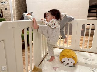 そうは言っても「柵」の中でおもちゃで遊びながらテレビを見続けてもらっていたのだが。