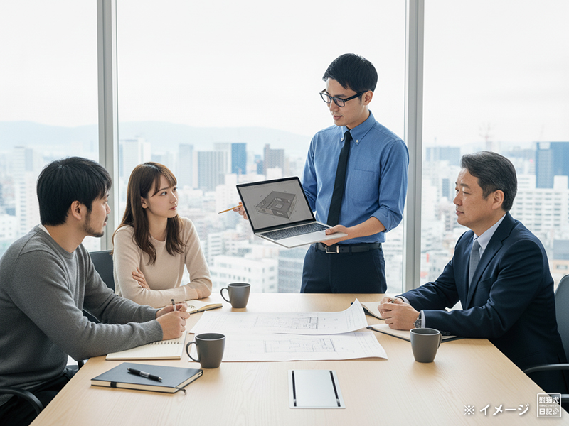 実際の竣工実績集を見せてもらいながら、「こんな建材が使える」「こんな仕切り方も可能」といった話も聞き、ネガティブな要素が何もないまま非常にいい内容で話が進んでいった。