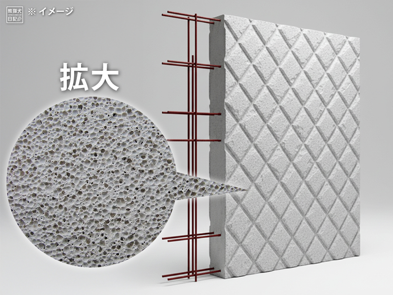 ALCパネルは、分かりやすく例えるとブロック塀のような構造だから、小さな気泡のような穴が無数に開いているので、ビスが効きづらいし、強引に打ち込んだとしても剥落する恐れもある。