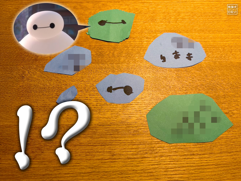 不規則な形状にカットされた色紙の片面に『ベイマックス』の顔が描かれ、もう片面に家族それぞれの名前が書かれており、俺の名前が2枚、嫁女房が2枚、小童が1枚という内訳で、家族全員へのプレゼントという名目で手渡された。