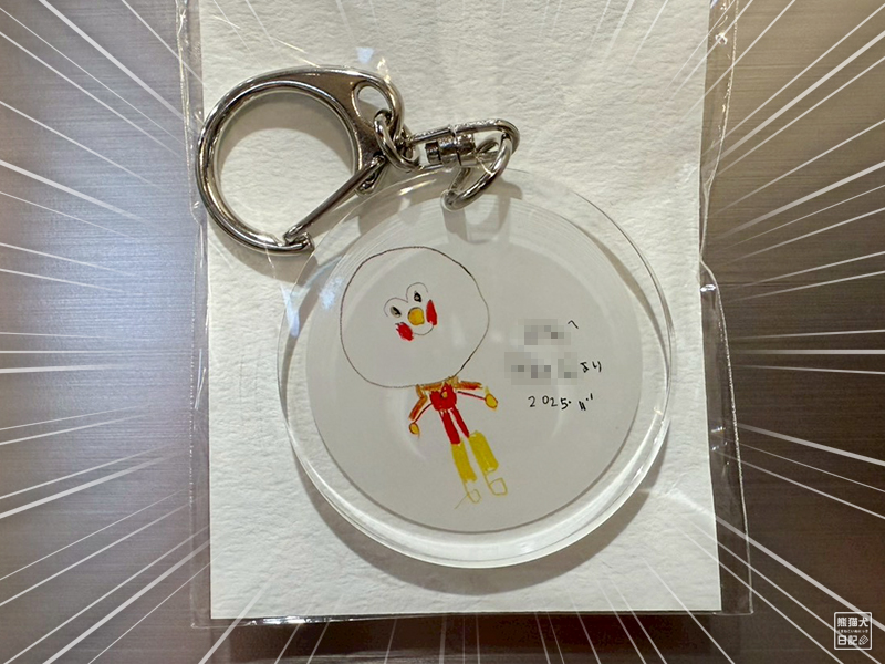絵や写真をキーホルダーなどに加工できるサービスがあるようで、自分の分だけ発注していた。