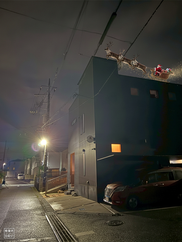 そういえば、少し前から小倅との間で「我が家は煙突がないけどサンタクロースはどこから入ってくるのか」という議論が生じてしまったのだが、最終的には「屋上から出入りする」という回答に落ち着いたので、その瞬間を押さえておいた。AIの力を借りて。