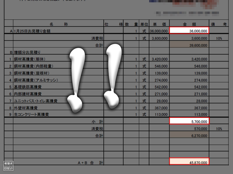 鉄骨住宅なので当然のことながら「鉄鋼バブル」は直撃する。