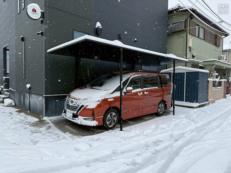 昨晩遅くまで晩酌していたので今朝は9時過ぎまで寝ていたのだが、窓の外の風景を見るや否や「これはヤバい!」と、大急ぎで駐車場のカーポートに雪の重みによる倒壊防止用の柱を設置する必要に迫られ、慌ただしい一日が始まったのだった。